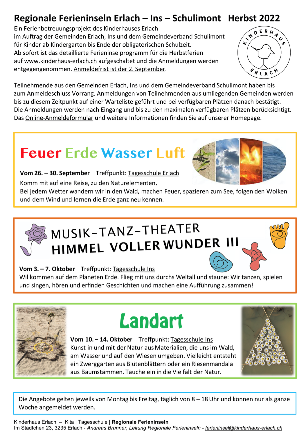 "FerienSpass in Erlach" vom 8. - 12.4.24 in Erlach